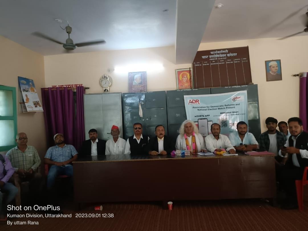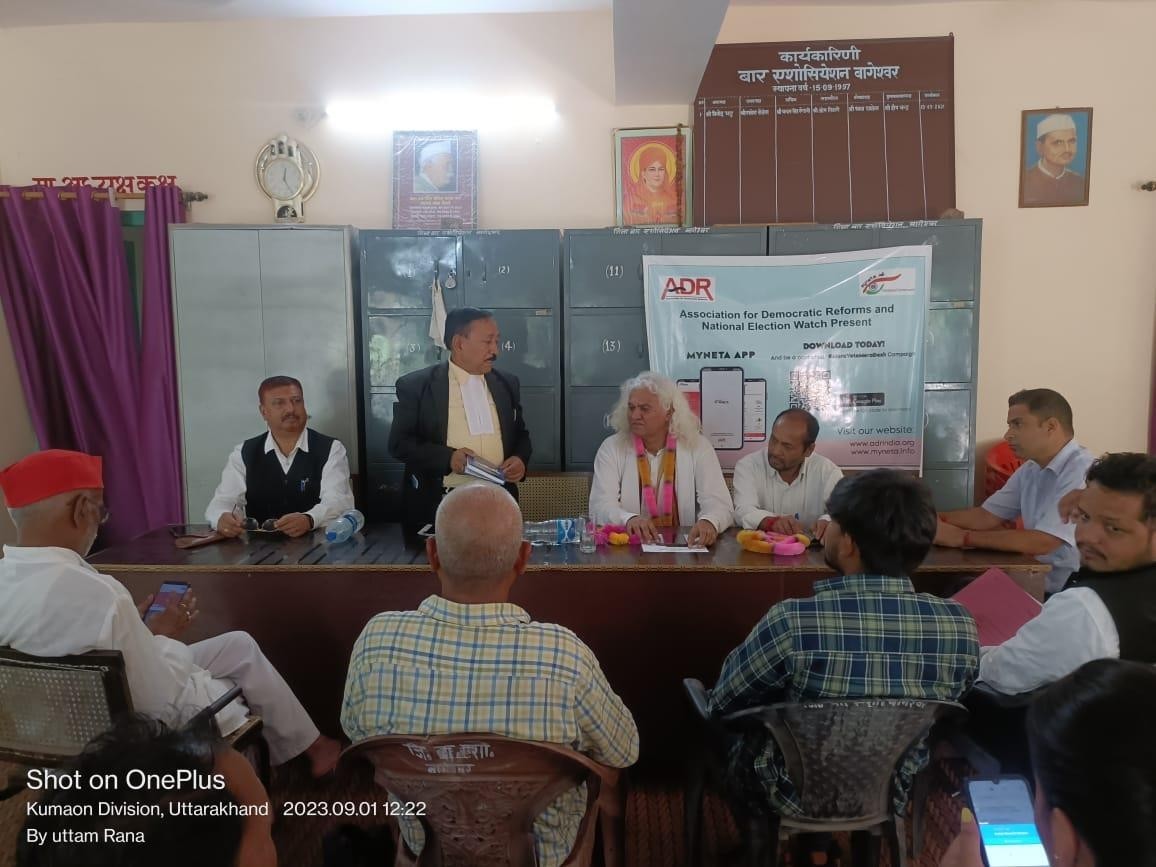 The Uttarakhand Election Watch (UKEW) team commenced pamphlet distribution at 9:00 am in Bageshwar market. Covering the Bus and Jeep Stands, they held interactions with local gatherings. Later, they conducted a successful Voter Awareness Campaign in various areas. During the campaign, they interacted with regional party leaders and other stakeholders. The Bar Association of Bageshwar felicitated the team with a joint press conference. UKEW's State Coordinator, Mr. Manoj Dhyani, presented the Voter Awareness Campaign to the Bar Association members and the public, emphasizing the importance of the 'NOTA' option in elections. The event included discussions and a Q&A session.